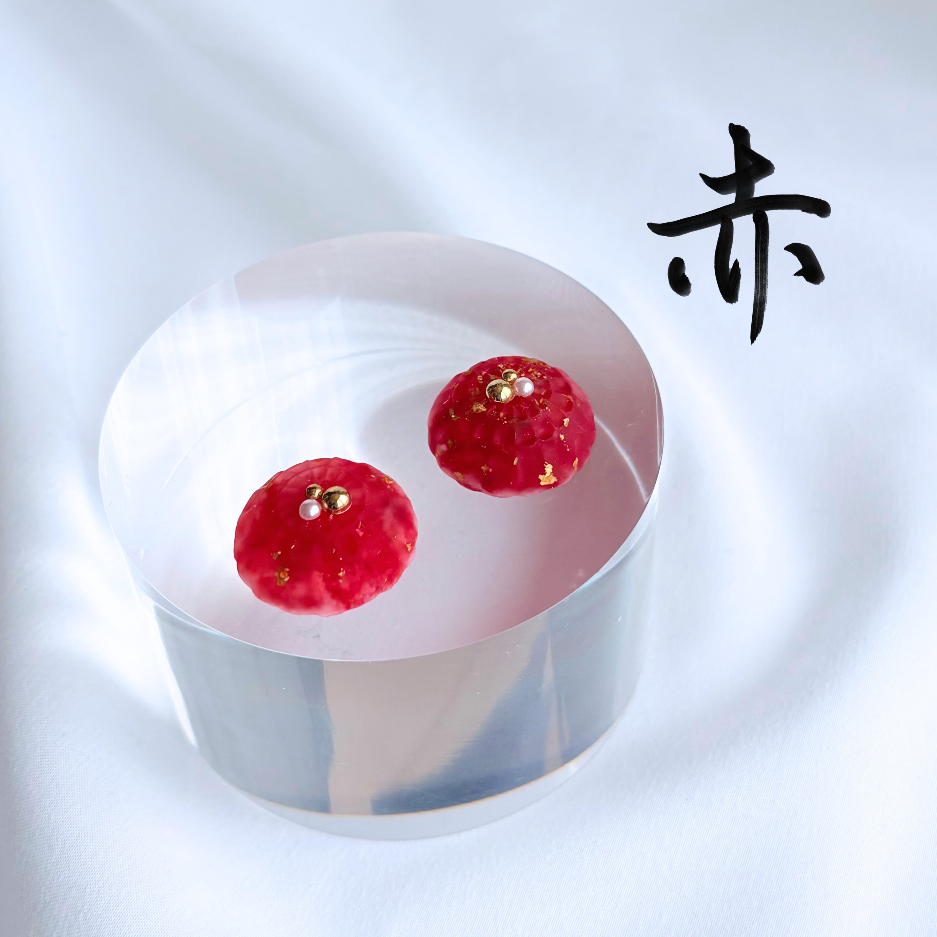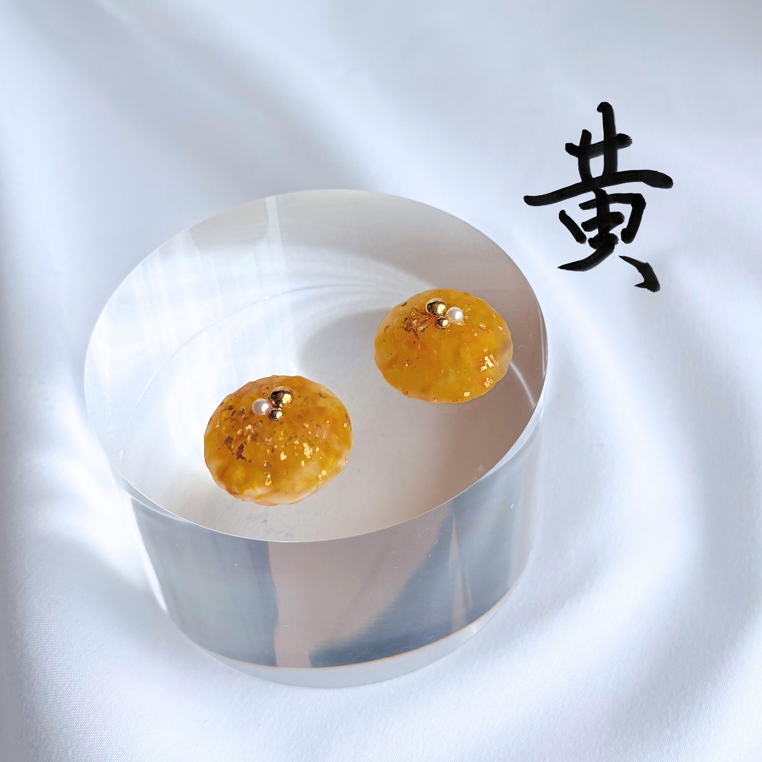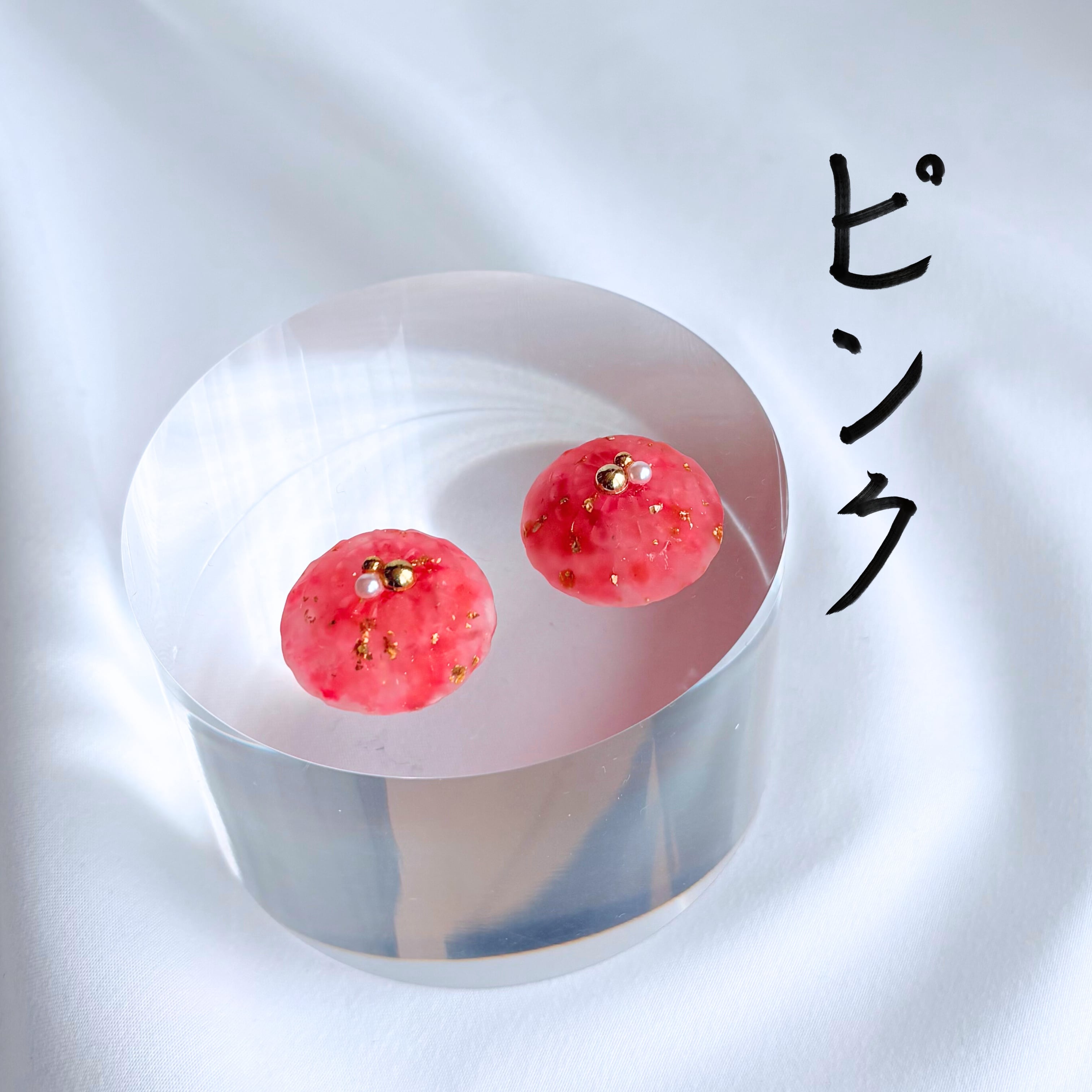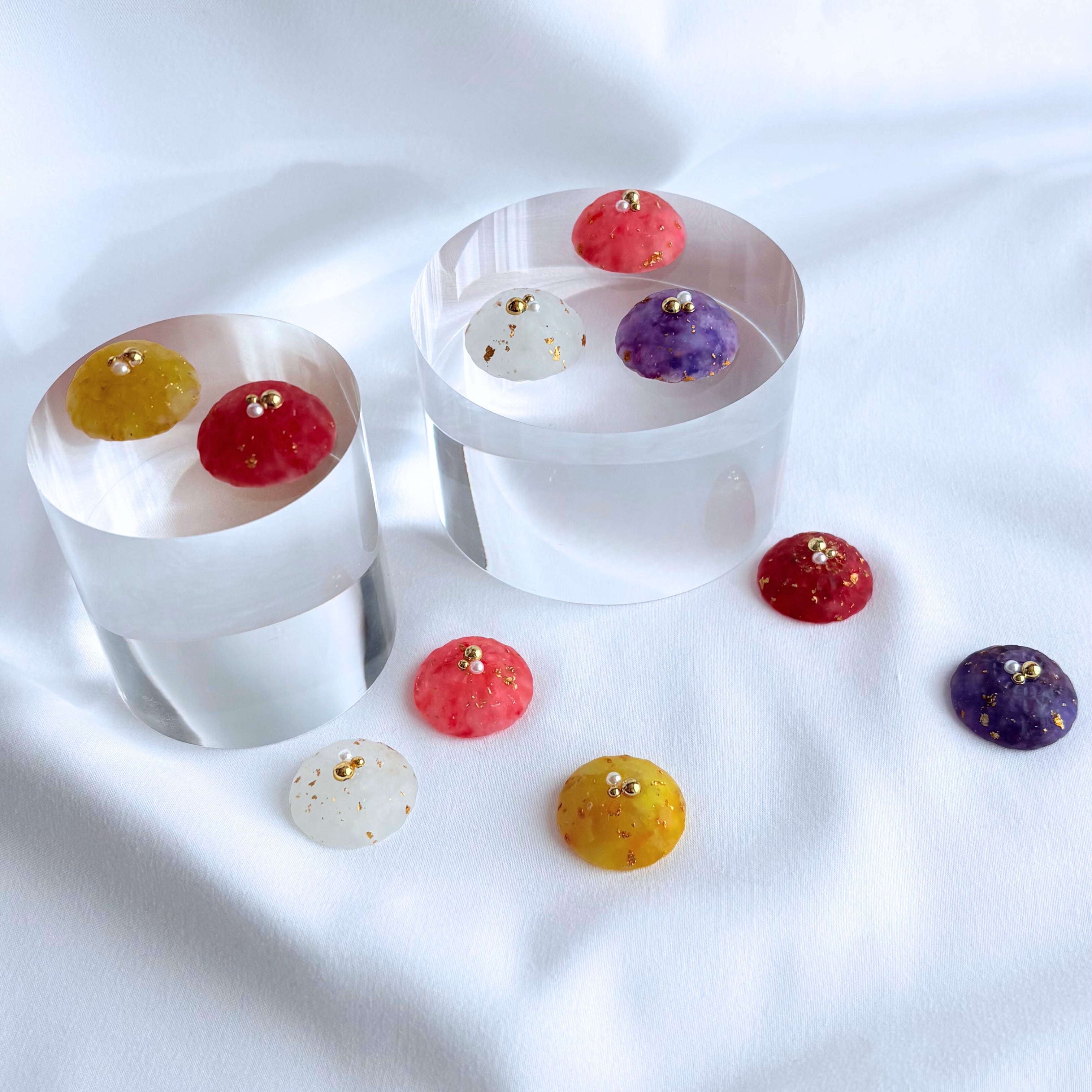 書道半紙に色付けをして、レジン(樹脂)を合わせ、洋菊のモチーフを作りました。
